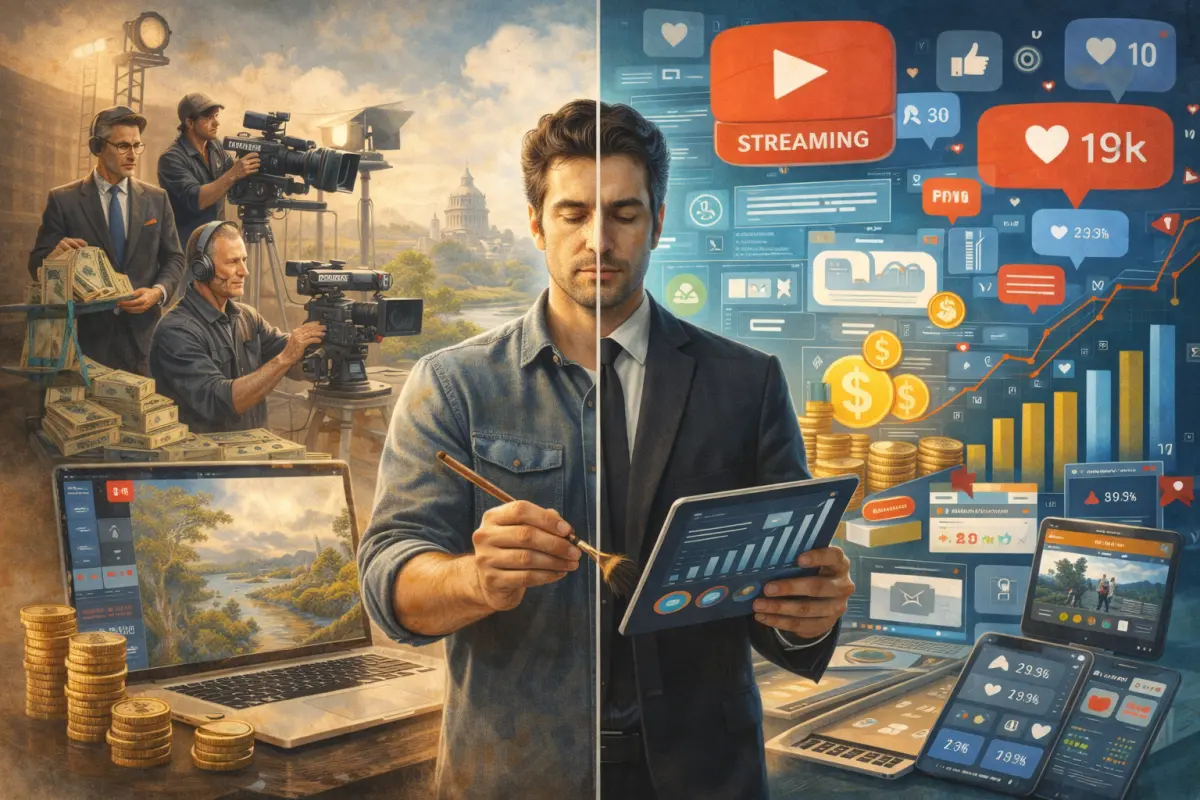 لم يعد الفن في العصر الحديث مجرد مساحة للتعبير الإنساني أو الإبداع الحر، بل تحوّل تدريجيًا إلى صناعة كاملة تُدار بالحسابات، وتُقاس نجاحاتها بالأرباح، ونسب المشاهدة، وحجم التفاعل. هذا التحول لم يحدث فجأة، بل كان نتيجة تغيّرات اقتصادية وتكنولوجية أعادت تشكيل مفهوم الفن ودوره في المجتمع.
