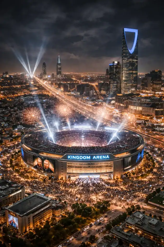 - البنية التحتية: “المملكة أرينا” مجهزة بتقنيات ذكاء اصطناعي تحلل سرعة كل ضربة وقوتها وتظهرها للجمهور فوراً على شاشات عملاقة.