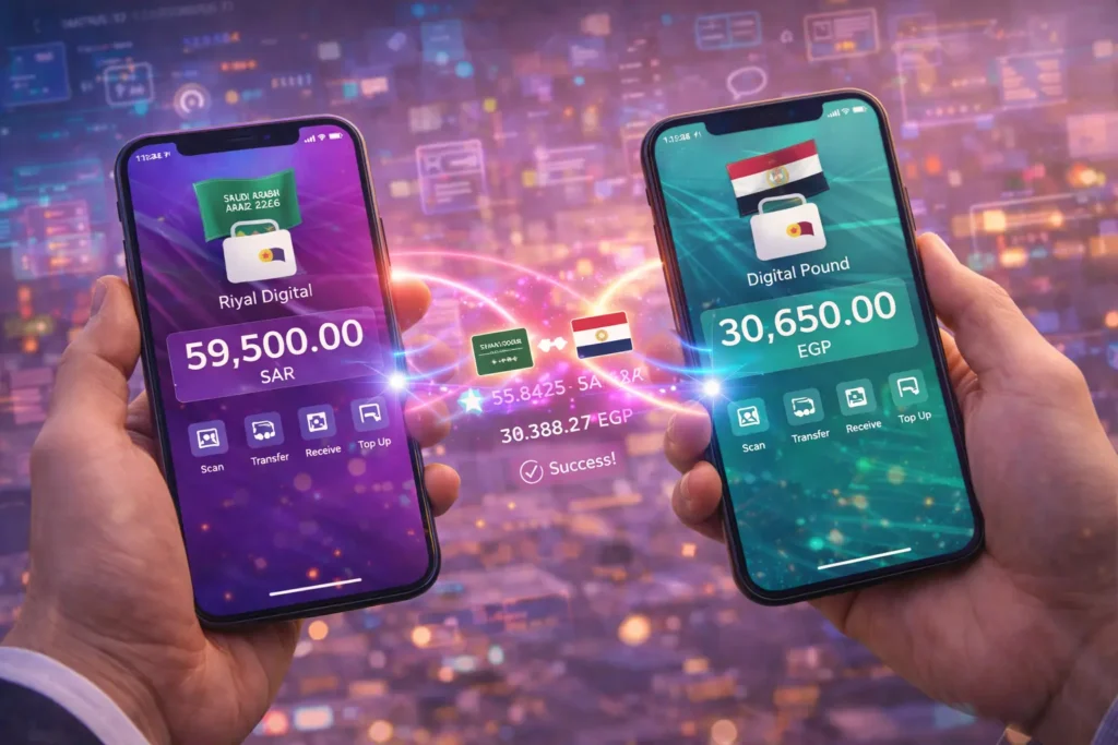 - تحويلات فورية مجانية: التحويل من “جنيه رقمي” إلى “ريال رقمي” أو أي عملة أخرى سيتم في أجزاء من الثانية دون الحاجة لوسطاء أو رسوم تحويل دولي باهظة.
