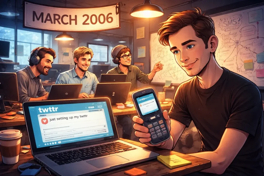 - أول تغريدة: في 21 مارس 2006، نشر جاك دورسي التغريدة الشهيرة: “just setting up my twttr”.